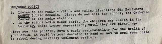 The newsletter’s language on school closings and weather-related absences is as emotionless as every other bit of information that filtered into homes from our Catholic school office. “Since you, the parents, have a basic responsibility for the health of your child.” In other words, send your child out on a frigid day and ye shall be judged accordingly. Keep them home, and they will miss out on work that they may never catch up. I can’t count how many days I slipped on the icy hill outside of that school. Pancake sole saddle shoes have no traction. Lit-er-ally none.